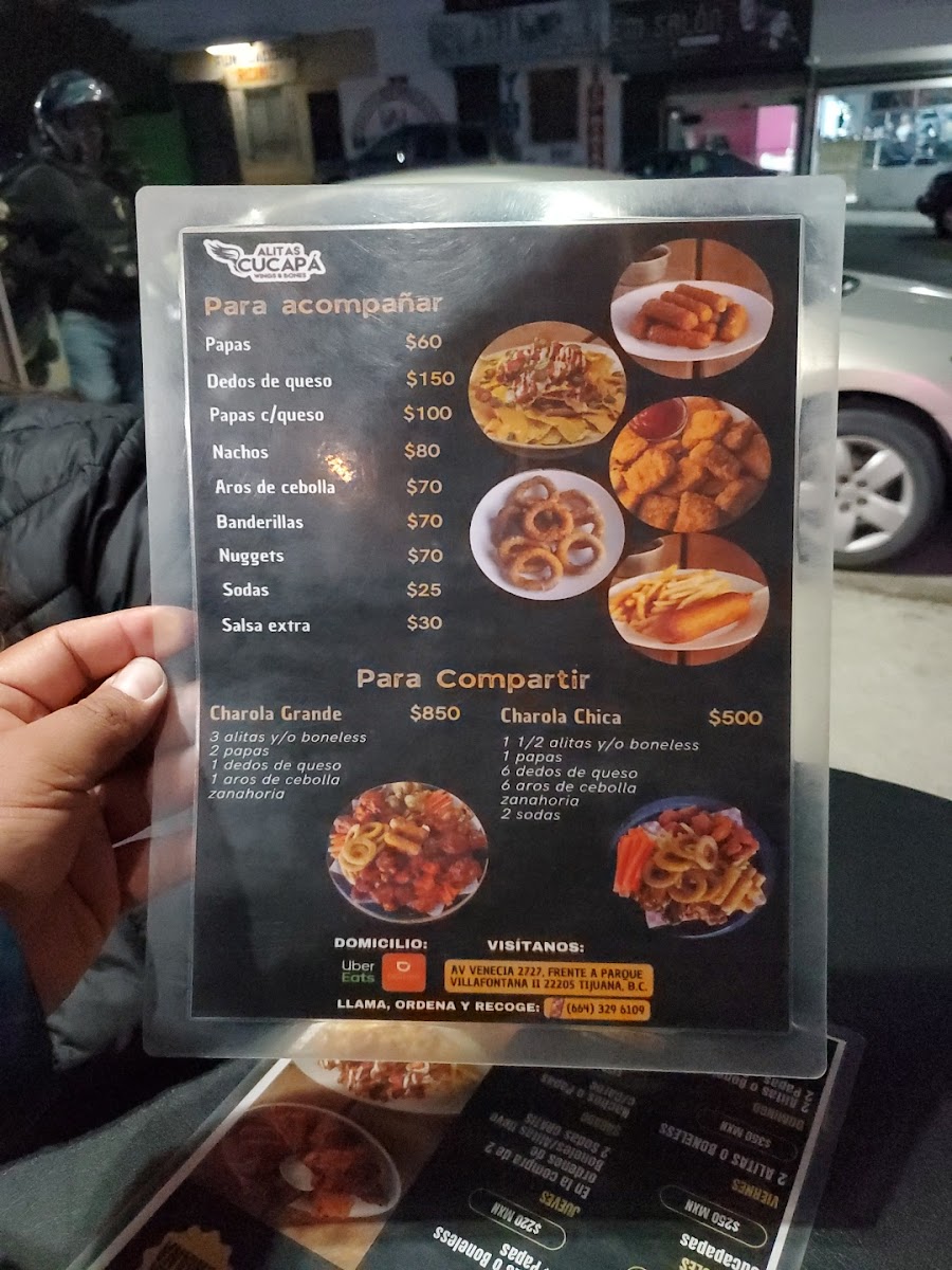 Welcome to Alitas Cucapá, a local gem nestled in the heart of Tijuana at Av Venecia 2727, Villafontana, Fontana II. This eatery specializes in delivering an array of delicious wings and boneless options, perfect for anyone craving a flavorful feast. With an inviting atmosphere and swift service, Alitas Cucapá stands out not only for its delightful offerings but also for its warm and friendly environment.